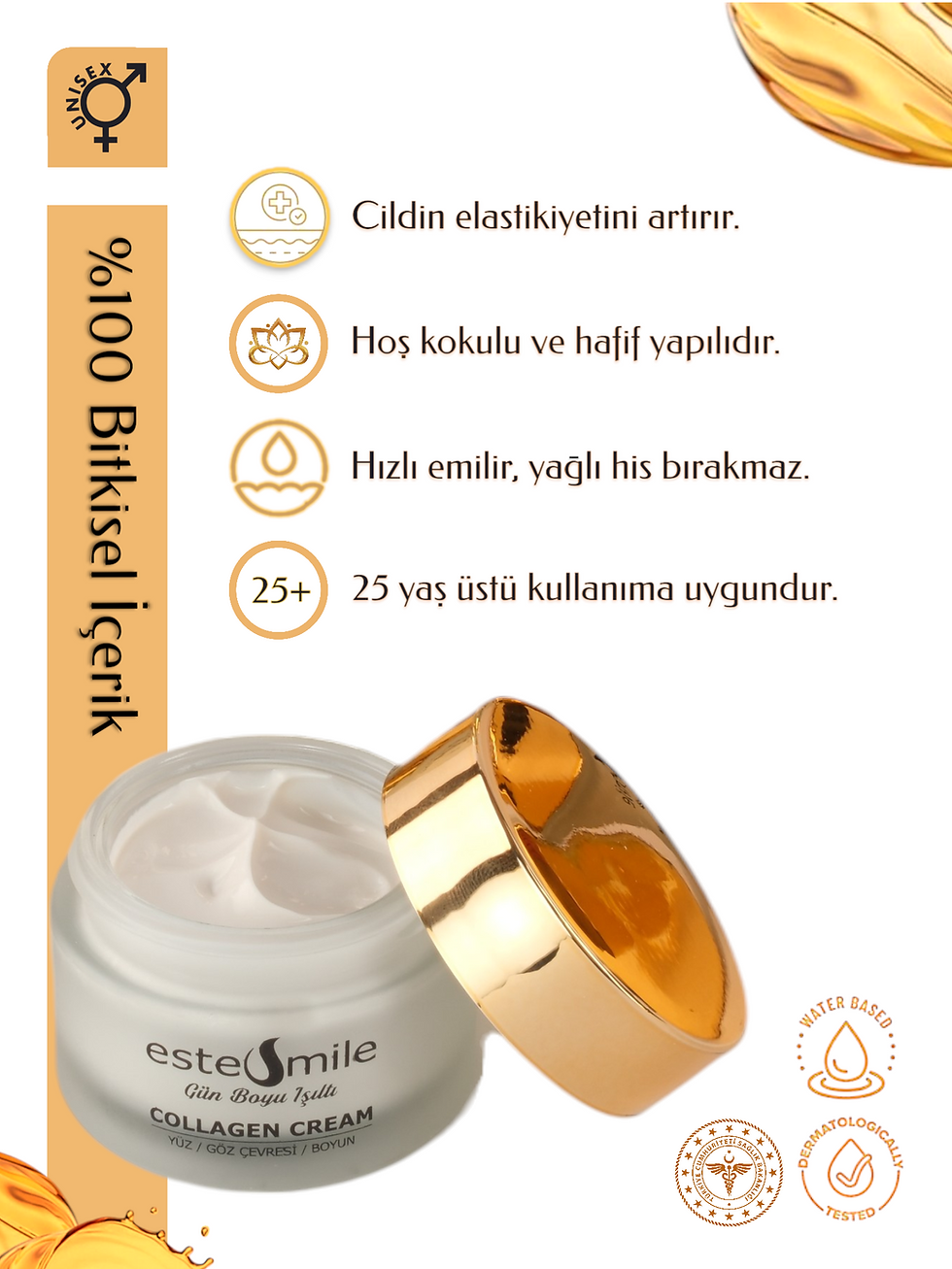 Bitkisel içerikli, proteinlerden oluşan yoğun kolajen içerikli, ciltteki kırışıklık ve matlık gibi yaşlanma belirtilerine karşı geliştirilen, 3 bölge olan yüz, göz çevresi ve boyun bölgesine uygulanabilen tek ve çok yönlü bir bakım kremidir.